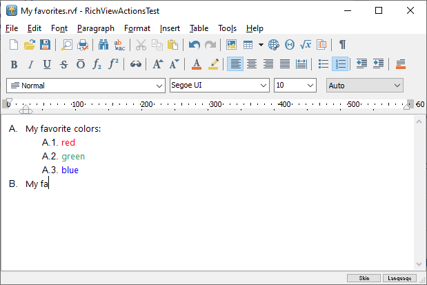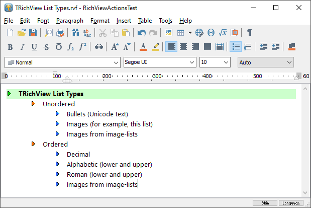 RichView Actions provide a user interface for applying and customizing list styles.